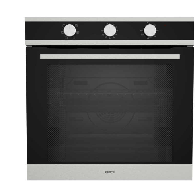 Four encastrable multifonctions de 72 litres en finition inox, équipé de 7 modes de cuisson et du système autonettoyant Aqua Clean. Simple d’utilisation grâce à sa minuterie mécanique, il offre une cuisson homogène et un entretien facile.