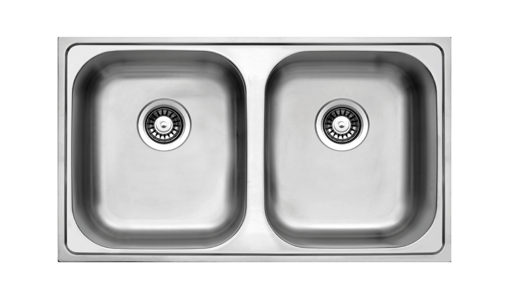 Évier inox TWIN 86, grand format 116×50 cm avec double cuve 200 mm, pratique, robuste et réversible, idéal pour meuble 80 cm.